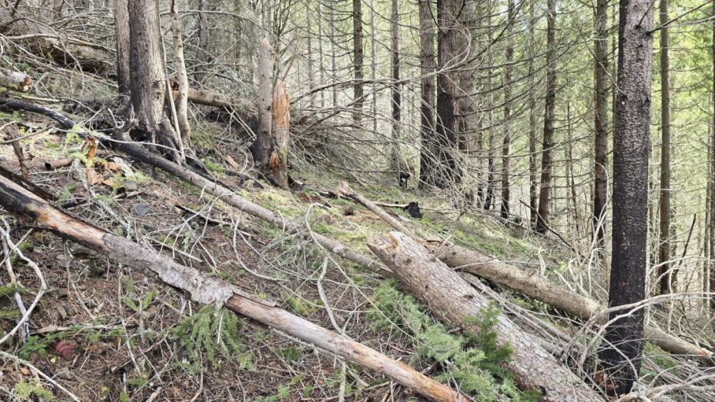 Down logs at first switchback