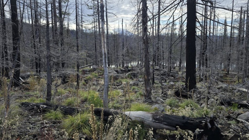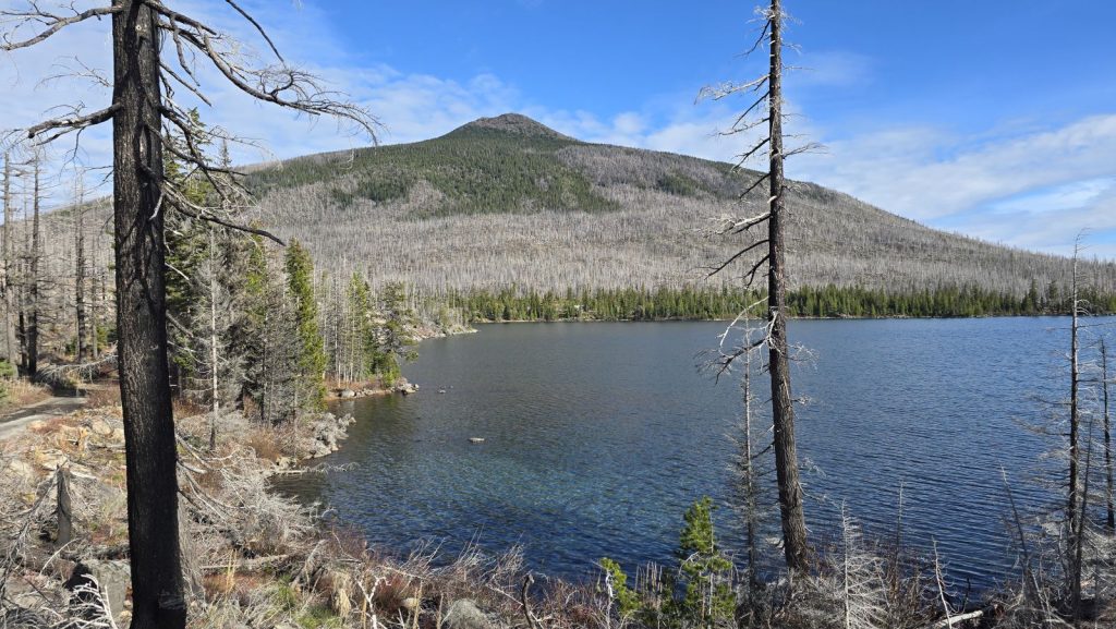 Parts of the trail did not burn, which surprised me. A few of the lakes are either not burned at all or only partially burned. The campsites at Averill Lake are mostly intact.
